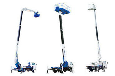 Автовышки имеют поворотную 360° стрелу и поворотную 180° люльку для 2 человек (200-250 кг)