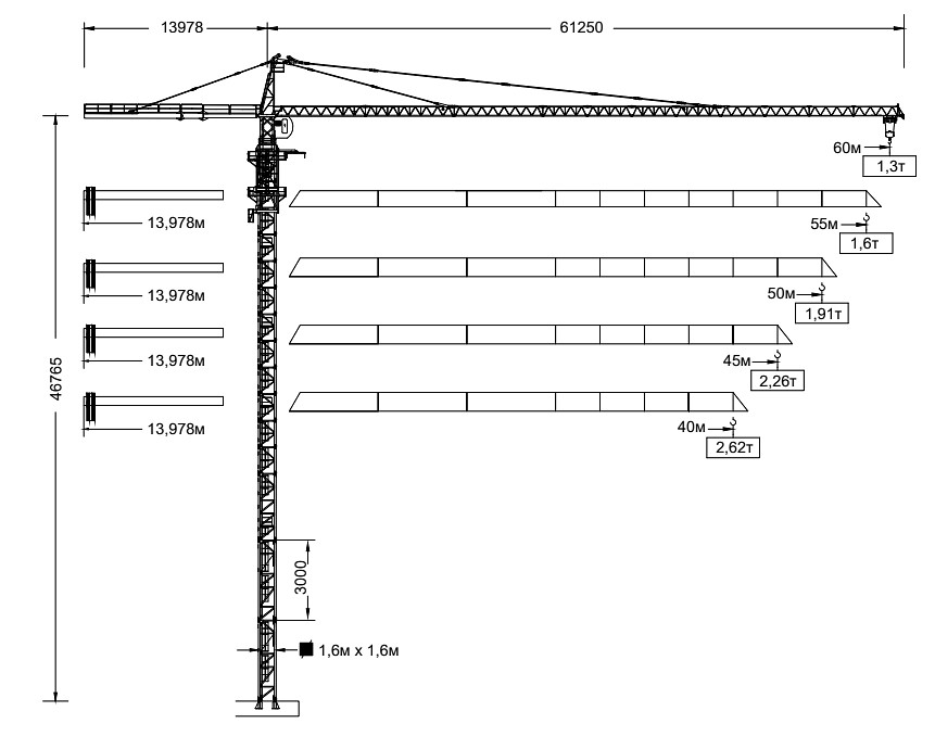 Оптимальная высота подъема крюка — 44 м.