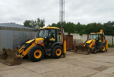 Аренда фронтального погрузчика-экскаватора с паллетными вилами в Коломне, Воскресенске, Ступино, Егорьевске