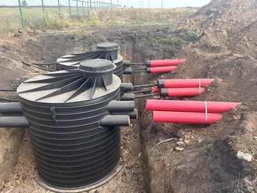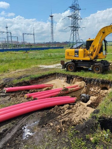 Прокол проводится только в горизонтальном направлении, поэтому необходимы котлованы в местах входа и выхода механизмов установки ГНБ. Протяжка трубопроводов под землей с применением буровой установки ГНБ с различными насадками.