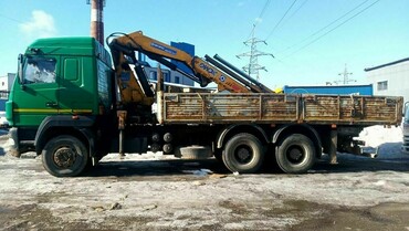 База - 3 осный с бортовым кузовом длинной 6 метров, грузоподёмность борта 10 тонн. Манипулятор 8 тонн