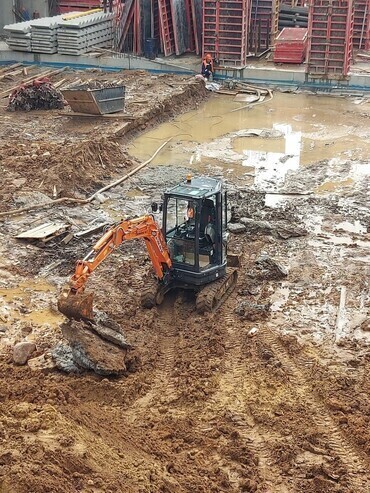 Обустройство дренажа на участке. Выборка грунта под септики, кольца и котлованы под строительство.