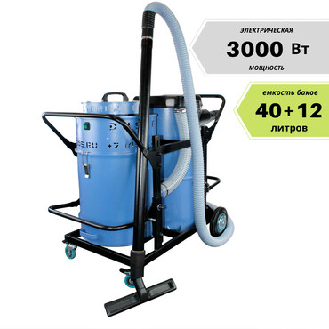 • Имеет 2 бака объемом 40 и 12 литров, что позволяет собирать большой объем загрязнений;