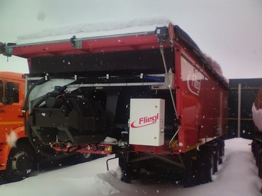 Самосвальный полуприцеп с горизонтальной разгрузкой для перевозки асфальта (с термоизоляцией стенок), а так же различных грузов (ПГС, АБС, асфальт, глина, снег и т.д.), модельFliegl ASS372 (26 м3).