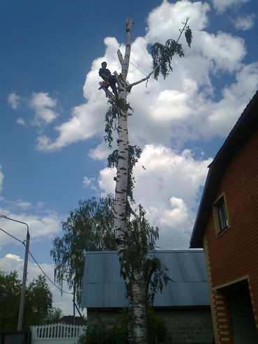 Занимаемся спилом, валкой, вырубкой деревьев любой сложности, в любых условиях и на любой территории. Работаем аккуратно и ответственно! Используем метод промышленного альпинизма или автовышку.