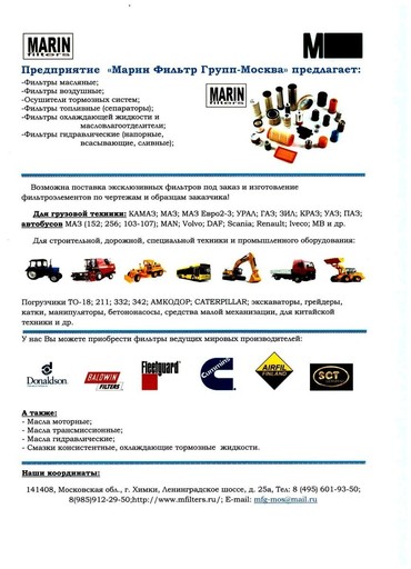 производителей. Фильтра для грузовой, сельскохозяйственной и строительной